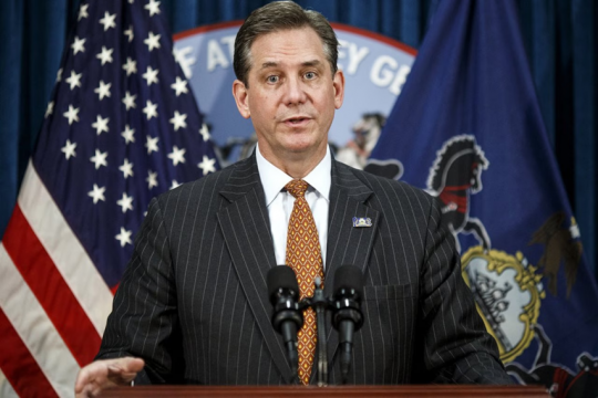 Bruce Lee Castor Jr. (born October 24, 1961) is an American lawyer and retired Republican politician from Montgomery County, Pennsylvania. He was appointed as the first Solicitor General of Pennsylvania in March 2016, and also first deputy attorney general the following July. Castor became acting attorney general less than a month later. He investigated the Penn State fraternity hazing scandal and led for the defense of the second impeachment trial of Donald Trump along with American lawyer David Schoen.