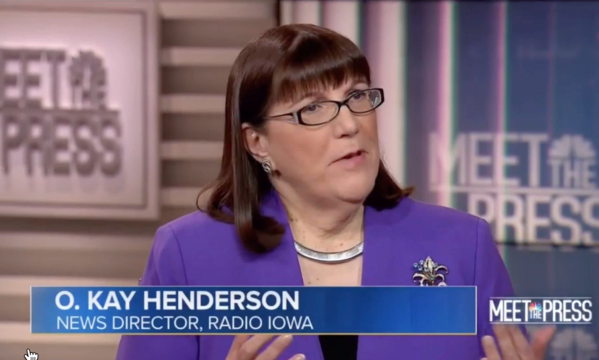 Henderson has been the news director of Radio Iowa for over 20 years and has reported on the Iowa presidential caucuses, including interviewing presidential candidates. Christi Parsons of the Chicago Tribune said that presidential candidates take Henderson “pretty seriously” with Tommy Vietor, a spokesman for Barack Obama during his 2008 campaign, saying, “She’s the voice of Iowa”. Vietor also said, “If you want to deliver a message and you’re not talking to Kay, you’re not doing it effectively.” National news media consider Henderson to be an Iowa political authority. She is the Iowa Capitol press corps Dean and has been an Iowa Press guest panelist. In 2021, Henderson took over the role of host for the public affairs show Iowa Press from David Yepsen. Her host debut was on September 17, 2021. Over the show’s run for 50 years, Henderson is the first female host.