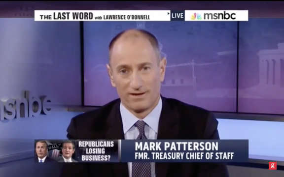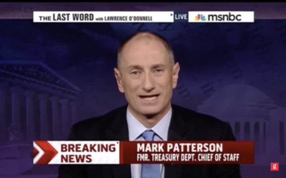 Mark A. Patterson is an American lobbyist, former vice president and managing director of Goldman Sachs, and former Chief of Staff to the United States Secretary of the Treasury. In 2018, he was hired as general counsel for Senator Chuck Schumer, overseeing investigations and appropriations and leaving his position at law firm Perkins Coie.