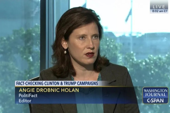 Angie Drobnic Holan is the director of the International Fact-Checking Network and editor for PolitiFact and was part of the Pulitzer Prize winning team of journalists noted for their fact-checking of the 2008 presidential elections in the United States.